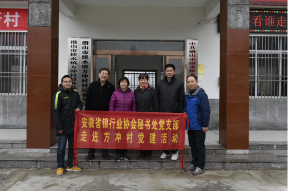 12月5日,安徽银保监局筹备组成员袁成刚、工会办负责人宣金华,安徽省银行业协会会长、农业银行安徽省分行行长刘加旺,专职副会长陈学军,秘书处党支部书记陆琳、安庆市农行、潜山市农行有关负责人、秘书处党员同志等一行十五人,深入扶贫一线,前往潜山市槎水镇方冲村开展爱心捐款活动,代表全体会员单位,为特困户危房改造捐款8万元。同时协会秘书处党支部与该村党总支开展党建共建活动。