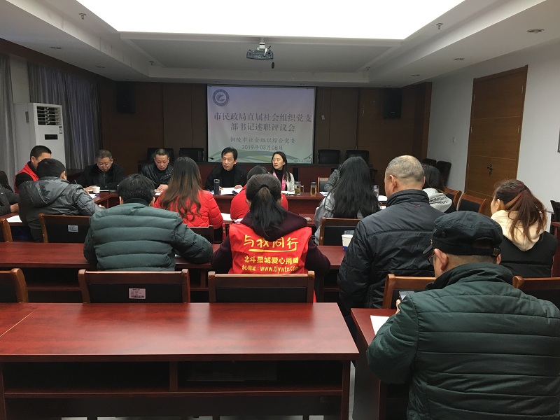 根据会议安排,局直属社会组织党支部书记在会上逐一进行口头述职,杨宏斌书记逐一进行点评。杨宏斌在点评中指出,2018年,局直属社会组织党支部能够深入学习贯彻习近平新时代中国特色社会主义思想和党的十九大精神,按照新时代社会组织党建工作的总要求,着力围绕“党建+公益”为抓手,以政治建设为统领,以提升组织力为重点,发挥了基层党组织的政治核心和战斗堡垒作用,取得了一定的成绩,但同时也存在对党的政治理论学习抓得不够紧、业务不够熟悉,党建品牌创建不够深入、党员发展工作欠缺等问题或不足。杨宏斌希望各党支部在新的一年里要切实履行好主体责任和书记“第一责任人”责任,提高政治站位,增强党建主业意识,按照新时代党的建设总要求,结合实际凝心聚力抓党建,更好地团结带领社会组织在党的红色引领下强化自身建设、规范活动开展,发挥每名党员的先锋模范作用。最后强调:各支部一要加强学习,增强党建工作的计划性。认真谋划制定年度党建工作计划,做到年初有计划、年终有总结。二要积极争创服务型党组织。要立足党建服务品牌,创新载体、丰富内容,争当公益组织的排头兵。三要大力推进党组织建设标准化。各党支部要坚持问题导向,确保年度星级创建目标的实现。