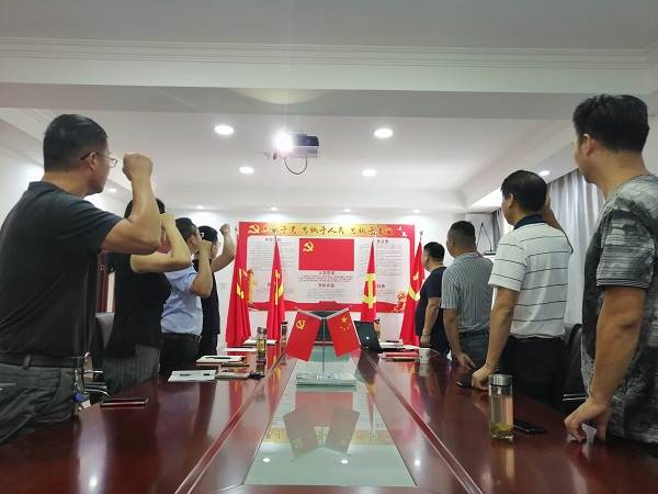 全体参会人员在张捍东同志的带领下重温了入党誓词并学习了党的基本知识。包括党的基本理论、党的组织体系、党支部的作用、党支部的组织生活形式和内容、党员权利与义务以及党员组织关系等基本知识。