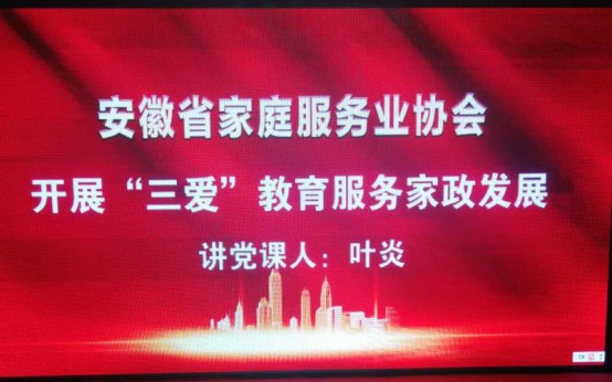 2020年5月23日,在安徽家协一届八次会长办公会期间,安徽家协党支部在池州组织召开了一次党课活动。党课围绕“开展‘三爱’教育、服务家政发展”主题,邀请了省社会组织综合党委派驻党建指导员、省市场监督管理局原副巡视员叶炎主讲。安徽家协党支部党员、入党积极分子以及会长办公会组成人员等共50多人参加。会长林清主持党课活动。