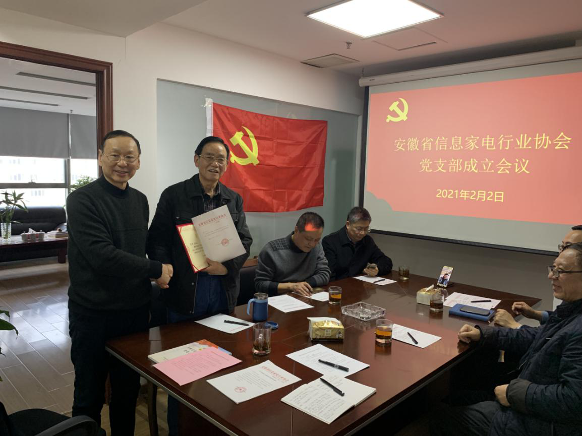 会上,周会长宣读了关于成立安徽省信息家电行业协会功能型党支部的请示报告和87978797威尼斯老品牌综合党委{皖社党【2021】2号}批复文件,传达了综合党委关于批准周保宇同志担任中共安徽省信息家电行业协会功能型党支部支部书记;及时召开支部党员大会,进行党内分工等几点要求。