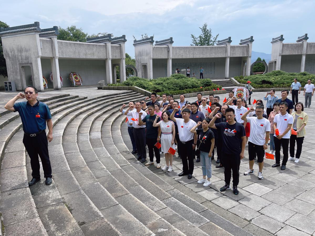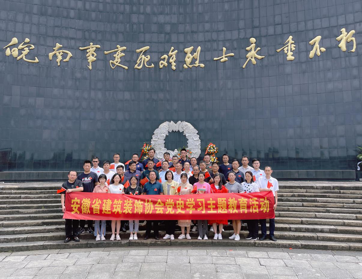 为庆祝中国共产党成立100周年,重温红色历史、传承奋斗精神,在张红燕秘书长、陈永鸿书记的带领下,安徽省建筑装饰协会党支部全体党员、秘书处成员及三十多名会员单位负责人前往泾县开展了党史学习主题教育活动,瞻仰皖南事变烈士陵园。毛泽东、周恩来、邓小平、江泽民、李鹏等多位党和国家领导人曾为之题词。皖南事变烈士纪念碑位于纪念广场和神道的中轴线上,黑色的碑面上镶嵌着邓小平“皖南事变死难烈士永垂不朽”的题词,碑身弧形,舒展高耸,象征着先烈们磊落坦荡的胸怀,崇高伟大的献身精神。