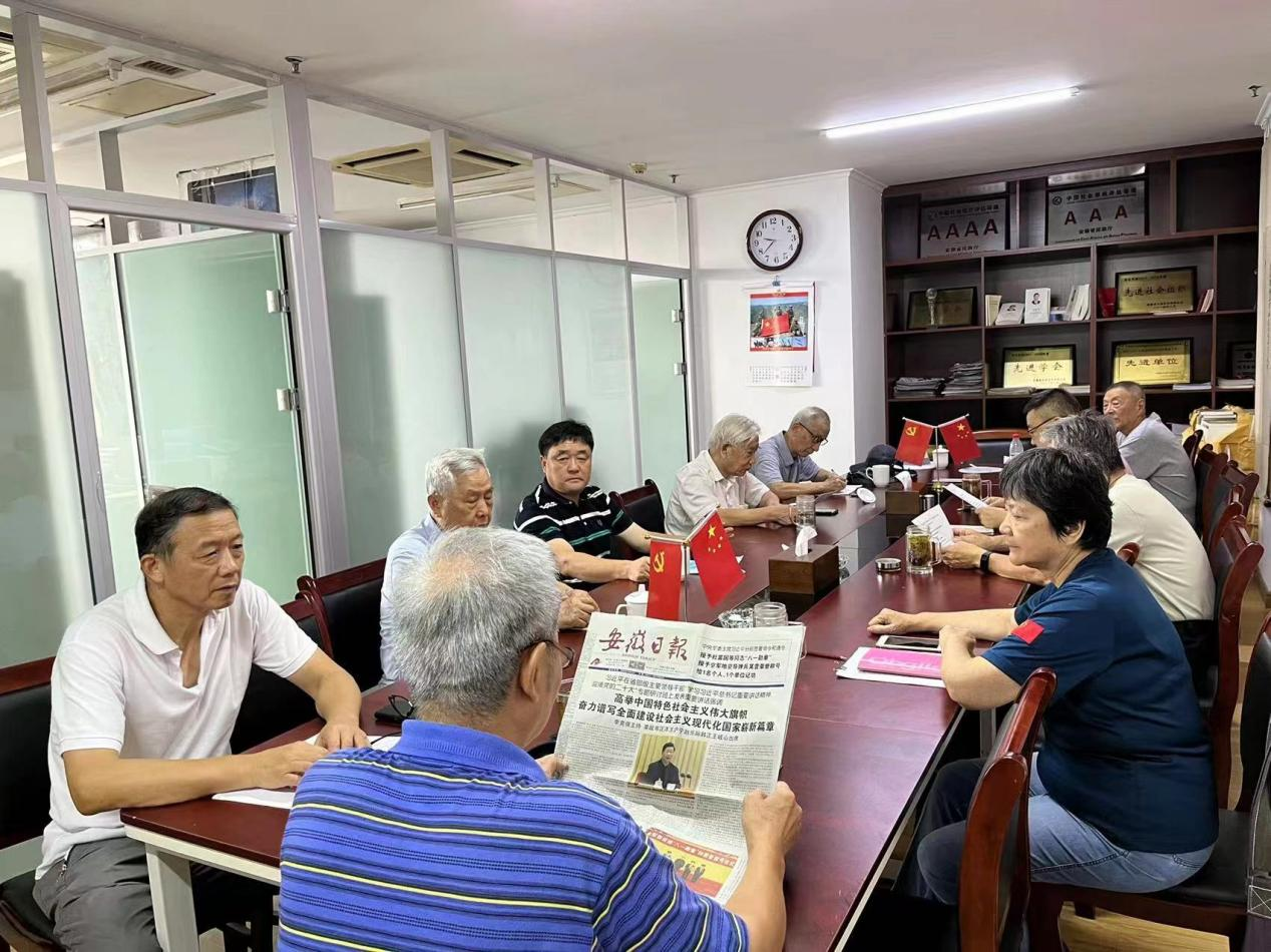 8月1日上午,安徽省新四军历史研究会党支部组织党员学习研讨习近平总书记在省部级主要领导干部“学习习近平总书记重要讲话精神,迎接党的二十大”专题研讨班上发表的重要讲话。党支部书记、省新研会常务副会长魏志光主持学习会。驻会党员参加了学习会。