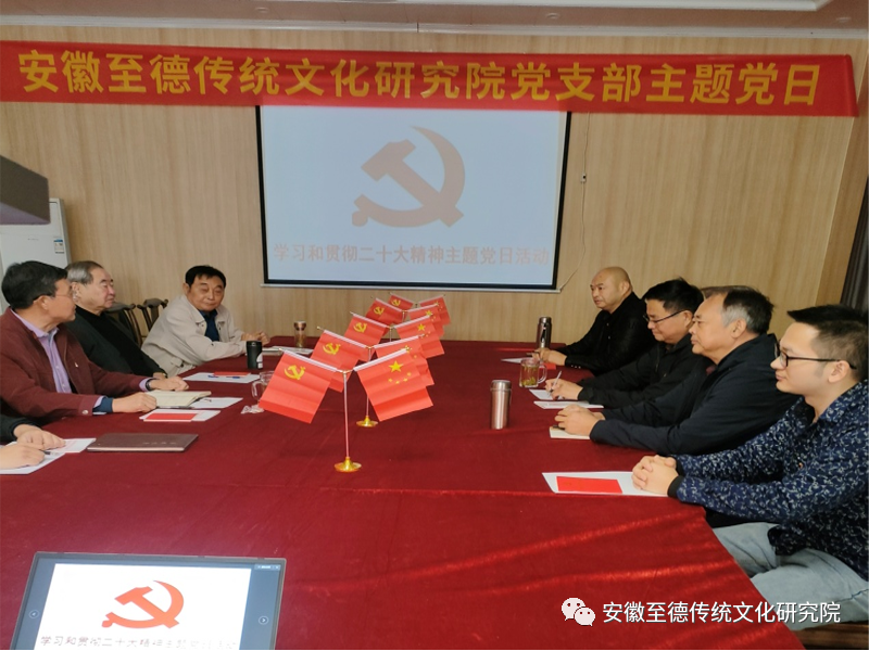 天阔云舒,孟冬暖阳。2022年11月5日安徽至德传统文化研究院党支部在党建620会议室,举行学习贯彻二十大精神主题党日活动。