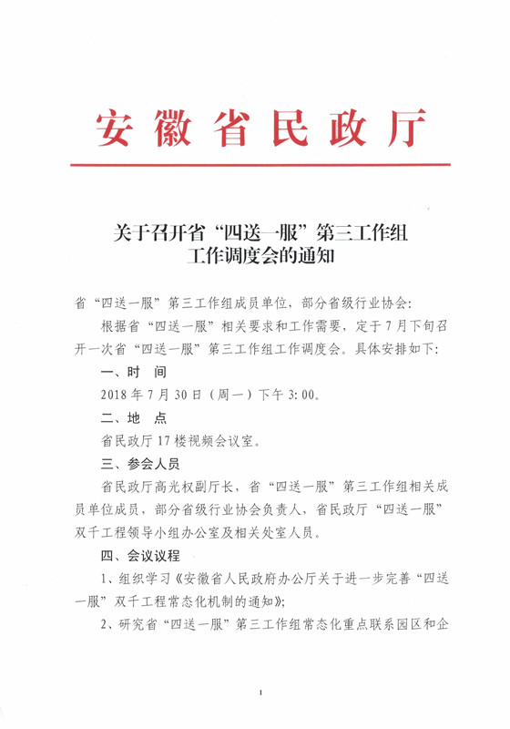 关于召开省“四送一服”第三工作组工作调度会的通知