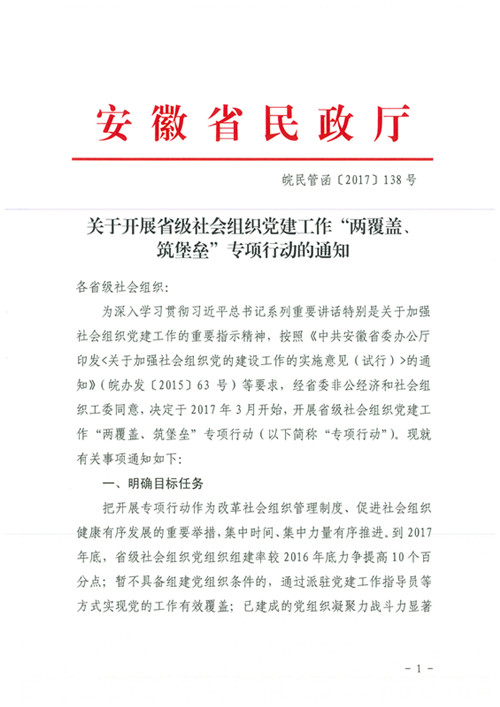 关于开展省级社会组织党建工作“两覆盖、筑堡垒”专项行动的通知