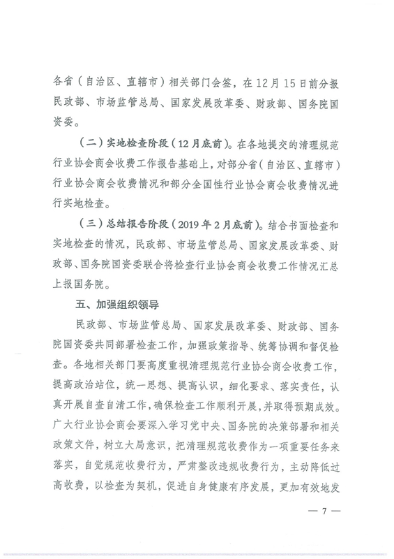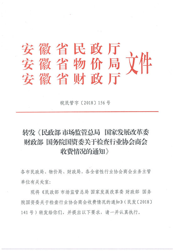 转发《民政部 市场监管总局 国家发展改革委 财政部 国务院国资委关于检查行业协会商会收费情况的通知》
