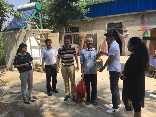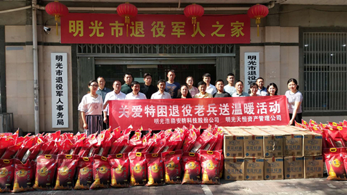 捐赠活动结束后,明光市社会扶贫联合会会长李荣、会员单位明光市天恒资产管理有限公司及明光市浩淼安防科技股份有限公司代表一起实地走访慰问了特困老兵家庭。