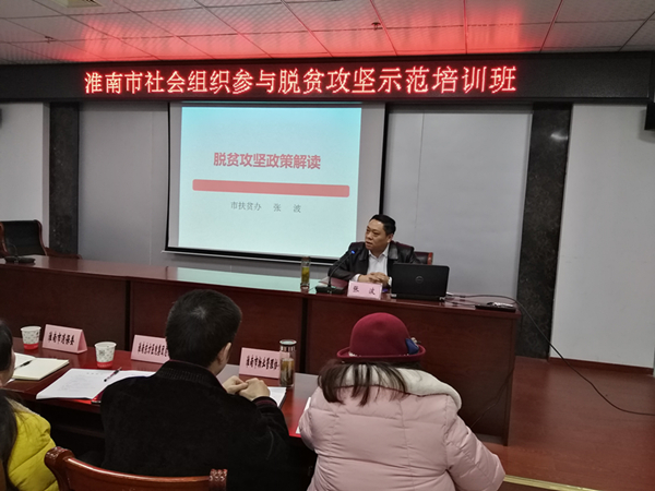 12月25日,淮南市民政局举办了全市社会组织参与脱贫攻坚示范培训班。市民政局直管及脱钩社会组织负责人、社会组织联合会副会长单位70余人,参加了为期1天的培训学习。