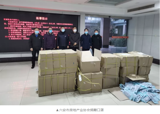 金安区房地产商会已募集10万元,所募集款物将全部用于抗击疫情工作。六安市房地产业协会积极寻找防护物资购买渠道,已购买19380只医用口罩,捐给金安区政府。