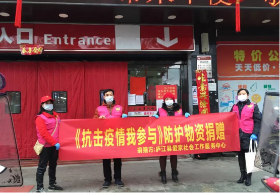 庐江县物业管理协会发挥红色物业协会和党员引领作用,协会社工每天与社区信息员一道入户宣传防疫知识,劝导小区棋牌室、理发店等暂停营业,社工们还拿出家中的消毒液,对所辖小区的公共区域循环消毒;庐江县阳光公益协会和星之火志愿团筹集善款,购置口罩、消毒液等防护用品,无偿送到抗击疫情的环卫工人、社区居民、警务人员、客运中心工作人员手中,志愿者们走进车站、火车站、小区开展防疫消毒,协助社区卡点值勤登记,并组织志愿者采购新鲜鸡蛋煮制茶叶蛋,慰问卡点值班人员,用行动彰显出志愿者的友爱、互助精神;庐江县爱家社会工作服务中心将“民间慈善促进联席会”赞助支持的一批医用外科口罩运送到庐江的乡镇,赠送给乡镇零售店,为店员和前来购买生活必需品的居民提供安全保障; 庐江蓝天救援队为一线民警和基层防疫干部捐款捐物,在疫情严峻的形式下,依然坚持开展救援活动,并积极配合社区开展防疫宣传登记工作;庐江县食用菌协会组织农副产品大篷车为城区部分小区开展农副产品配送活动,让居民不出小区就可以买到新鲜的蔬菜;县青年企业家协会和庐江爱心车队捐款购买疫情防控口罩和消毒液等,慰问战斗在防控疫情第一线的交通战线防疫人员,并号召全体出租车驾驶员在禁行期间顾全大局,少出门、不串门,为国分忧、为社会作贡献;庐江县黄屯商会发布《黄屯商会防疫志愿服务活动倡议书》,协助龙桥镇黄屯社区开展防疫志愿服务活动,为老街群众派送生活必需品,积极宣传党和政府的防控防疫决策。