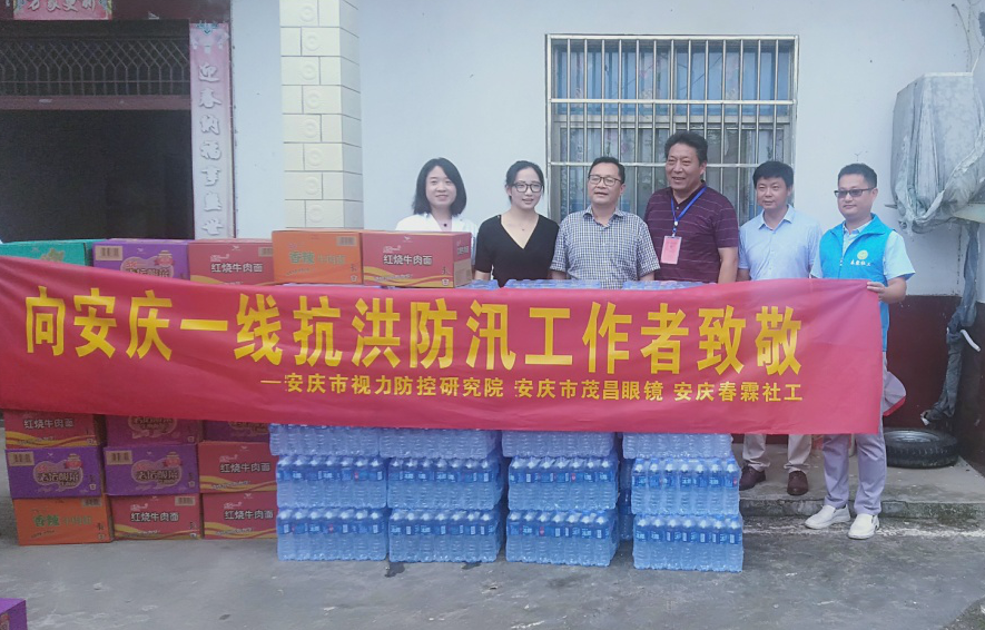 市视力防控研究院携手市茂昌眼镜、市春霖社工向大观区海口镇保婴村抗洪救灾一线同志送去相关物资,向抗洪救灾同志们致敬!