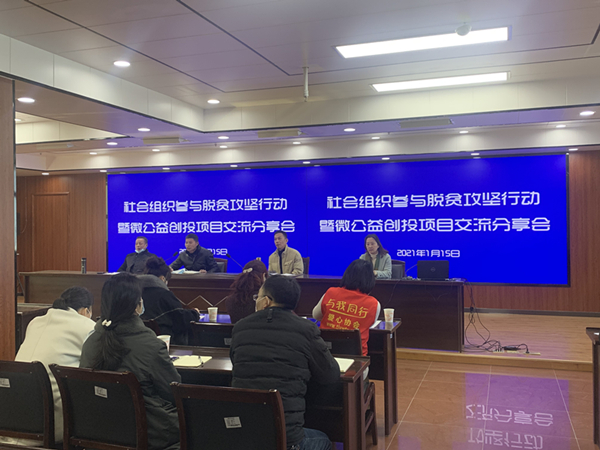 近日,铜陵市2020年社会组织参与脱贫攻坚行动暨第六届微公益创投项目交流分享会在市民政局8楼会议室顺利举办。参加会议的有市民政局、市扶贫办、社会组织帮扶团团长单位及部分微公益创投项目单位负责人。