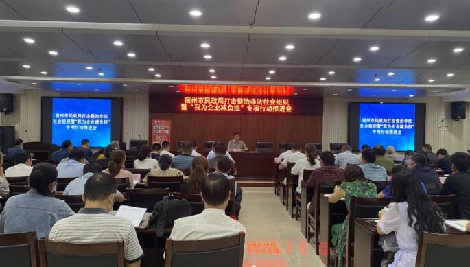 6月18日,宿州市民政局召开打击整治非法社会组织暨“我为企业减负担”专项行动推进会,引导和动员市本级社会组织积极参与打击整治非法社会组织和“我为企业减负担”专项行动。