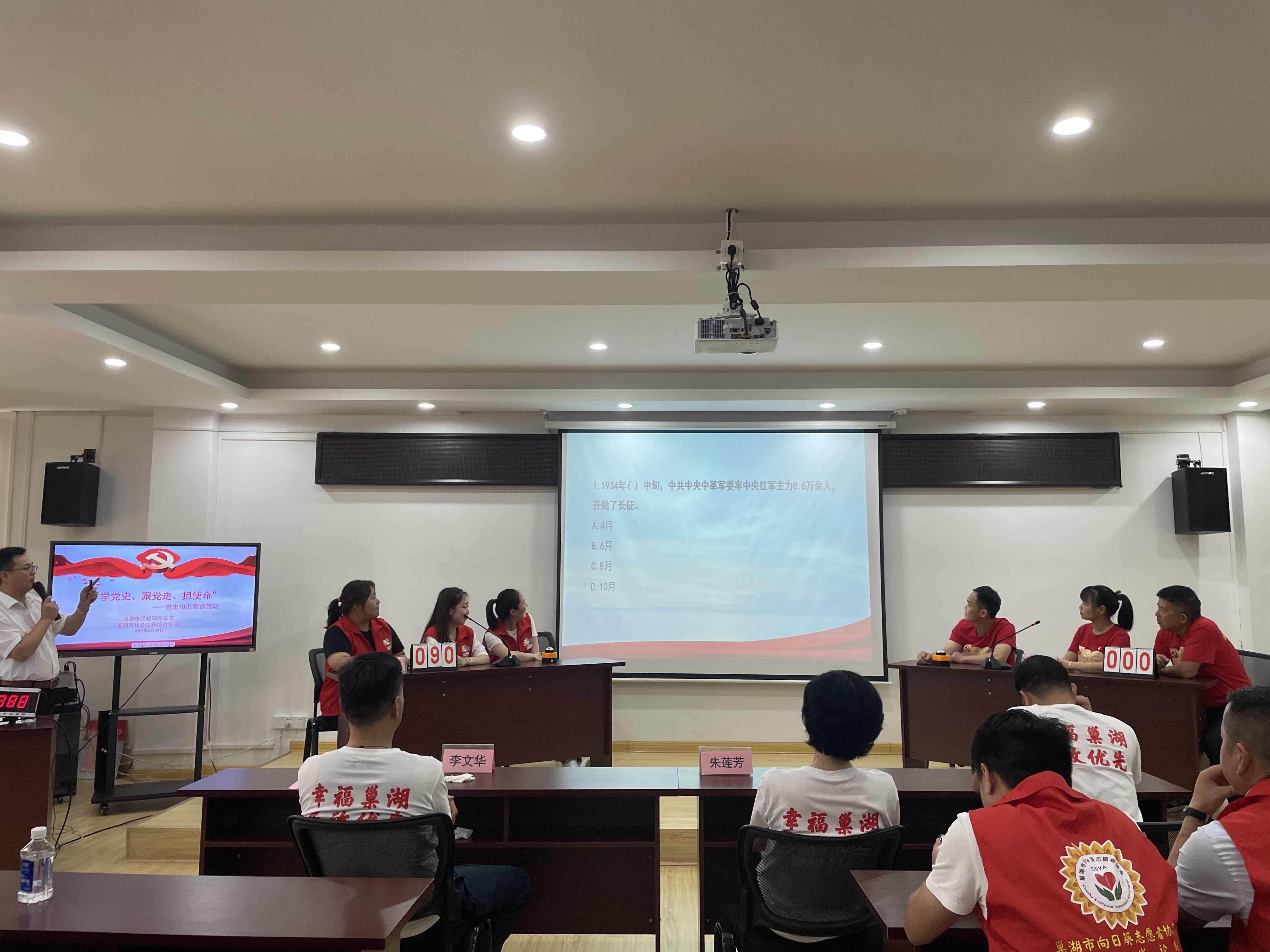 为促进社会组织党员、职工进一步了解党走过的峥嵘岁月,学习革命先烈的优秀品质,在学思悟践中汲取智慧和力量,坚定理想信念、勇担责任使命,6月29日,巢湖市民政局党总支、巢湖市社会组织综合党委隆重举行“学党史、跟党走、担使命”党史知识竞赛。
