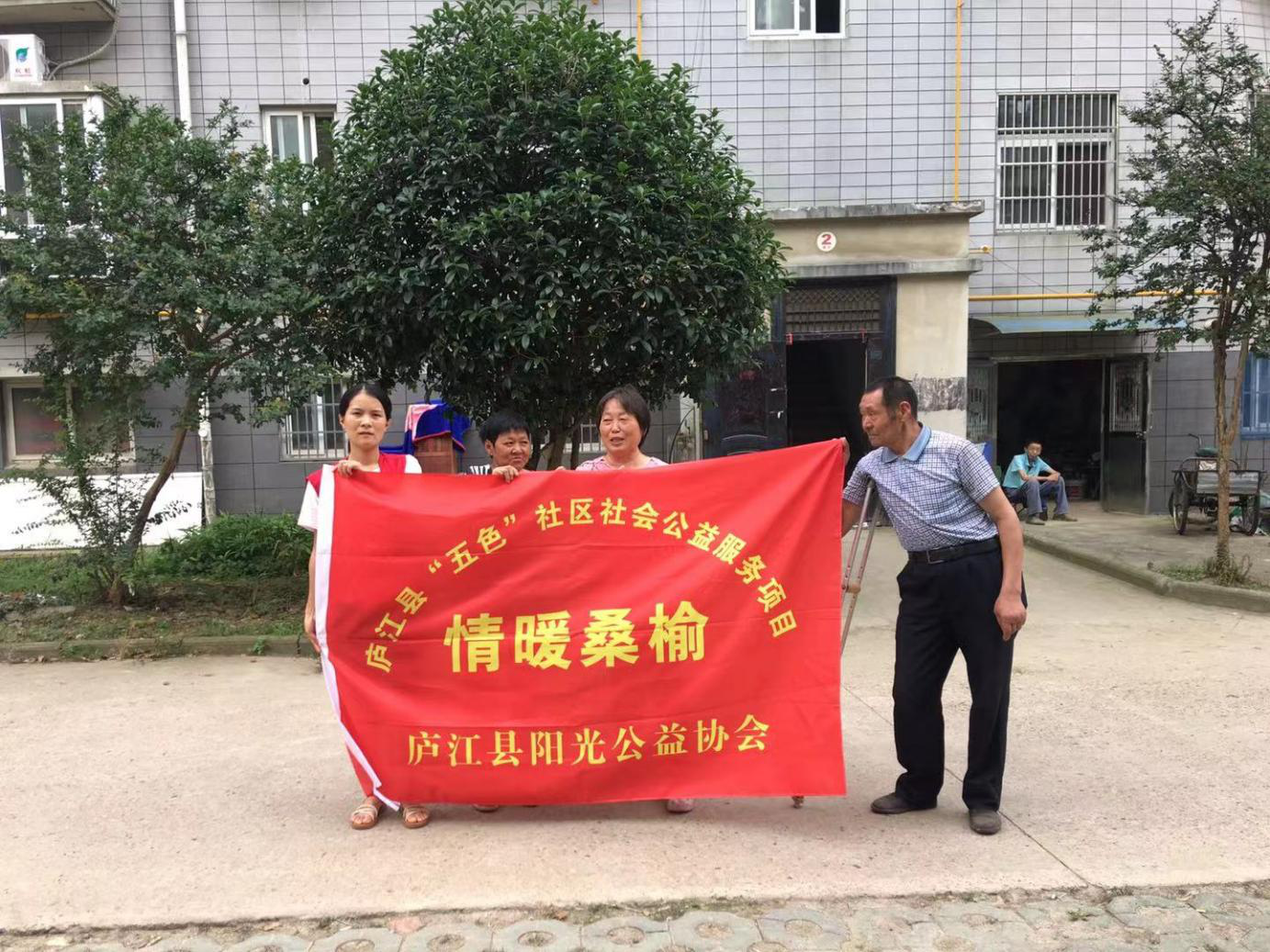7月1日,庐江县阳光公益启动“五色”社区社会公益服务项目——“情暖桑榆”,以实际行动致敬中国共产党百年华诞。