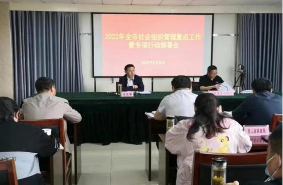 会上,各县区汇报了2021年社会组织管理工作情况,明确了2022年度工作重点,交流了经验做法。市民政局社会组织管理局局长谷良成传达学习了省民政厅2022年度重点工作和社会组织专项行动有关会议精神,部署安排2022年度重点工作和全市社会组织专项整治行动。他指出,2022年要重点抓好五个方面工作:一是要加强社会组织党建工作。加强党对社会组织的全面领导,发挥好市社会组织党建专委和综合党委作用,推进落实“谁主管、谁负责”的管理体制,会同业务主管单位合力抓好社会组织党建工作。加强社会组织“功能性”党组织组建力度,对一些社会组织尽快建立党组织,实现市民政局主管的社会组织和脱钩后行业协会商会党组织组建率增幅达10%。二是完成社区社会组织和公益创投任务。发挥行业协会商会在“三地一区”建设和“双招双引”中的积极作用,推进行业协会商会市场化、社会化、职业化改革。持续培育发展社区社会组织,到2022年底,全市每个城市社区平均拥有不少于10个社区社会组织,每个农村社区平均拥有不少于3个社区社会组织。今年,要加大社会组织公益创投力度,推动社会组织在创新基层社会治理中更好发挥作用,在为老、助残、济困、青少年服务和社区治理等方面实施20个以上服务项目。三是开展社会组织登记管理优质服务。落实“以人民为中心的发展思想”,进一步完善社会组织登记管理制度,推行政务服务“上门服务”“全程帮办”“容缺受理”等改革事项,不断提升社会组织办事效率。持续开展“僵尸型”社会组织清理、整治工作,净化社会组织发展环境,提升全市法人治理结构健全、无不良信用信息记录的社会组织比例超过70%。四是进一步加强社会组织年度检查和日常监管。强化社会组织年度检查,市、县两级社会组织2021年度年检率达80%以上。加大抽查审计力度,实现社会组织法定代表人离任审计全覆盖。加强社会组织信用信息管理,健全“活动异常名录”和“严重违法失信名单”制度。持续开展行业协会商会涉企收费清理整治,进一步为市场主休纾困减负。规范社会组织政治行为,持续打击整治非法社会组织,防范化解社会组织领域重大风险。开展社会组织等级评估,提升社会组织服务能力。五是开展社会组织专项整治行动。开展社会团体分支(代表)机构和社会服务机构非营利监管专项整治行动是省、市一项重要工作,纳入年度重点工作评估,要加强组织,完善机制,如期推进,确保取得真正实效。