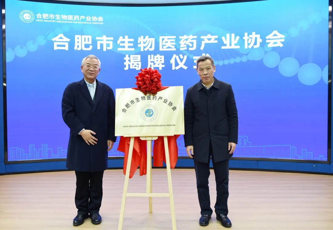 (大健康研究院田志刚院士与合肥经开区管委会党工委书记、管委会主任秦远望共同为协会揭牌)