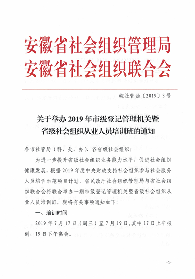 关于举办2019年市级登记管理机关暨省级社会组织从业人员培训班的通知