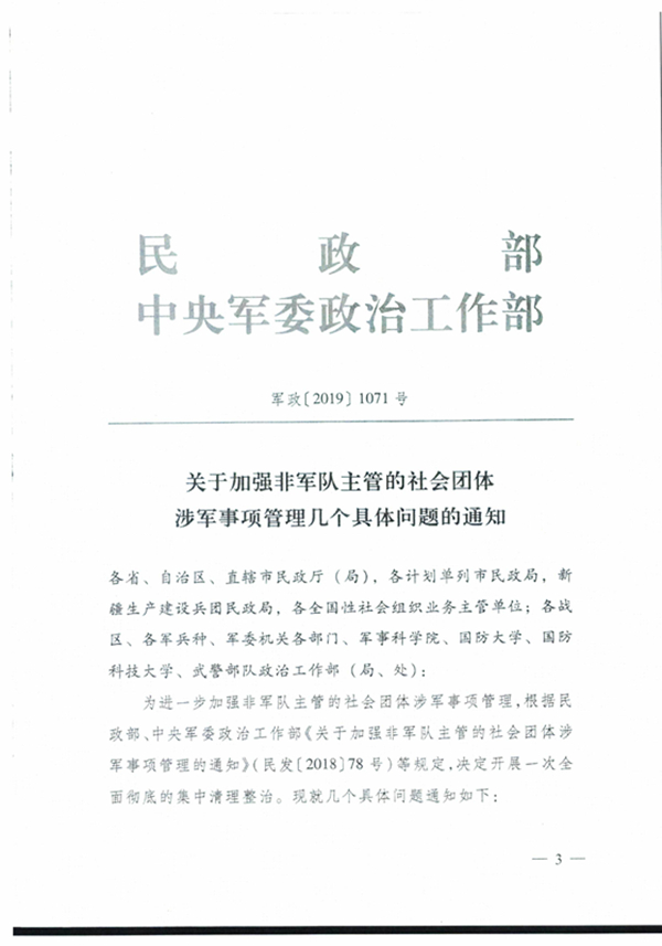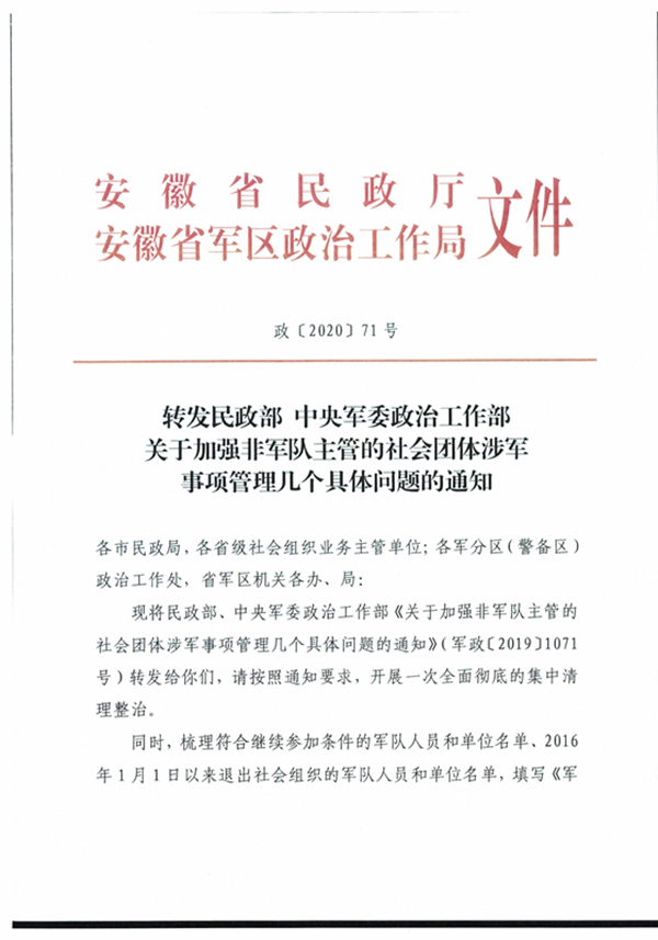 转发民政部 中央军委政治工作部关于加强非军队主管的社会团体涉军事项管理几个具体问题的通知