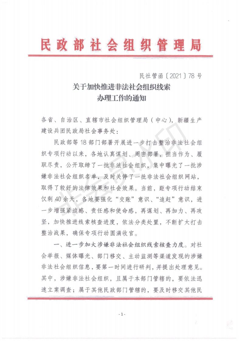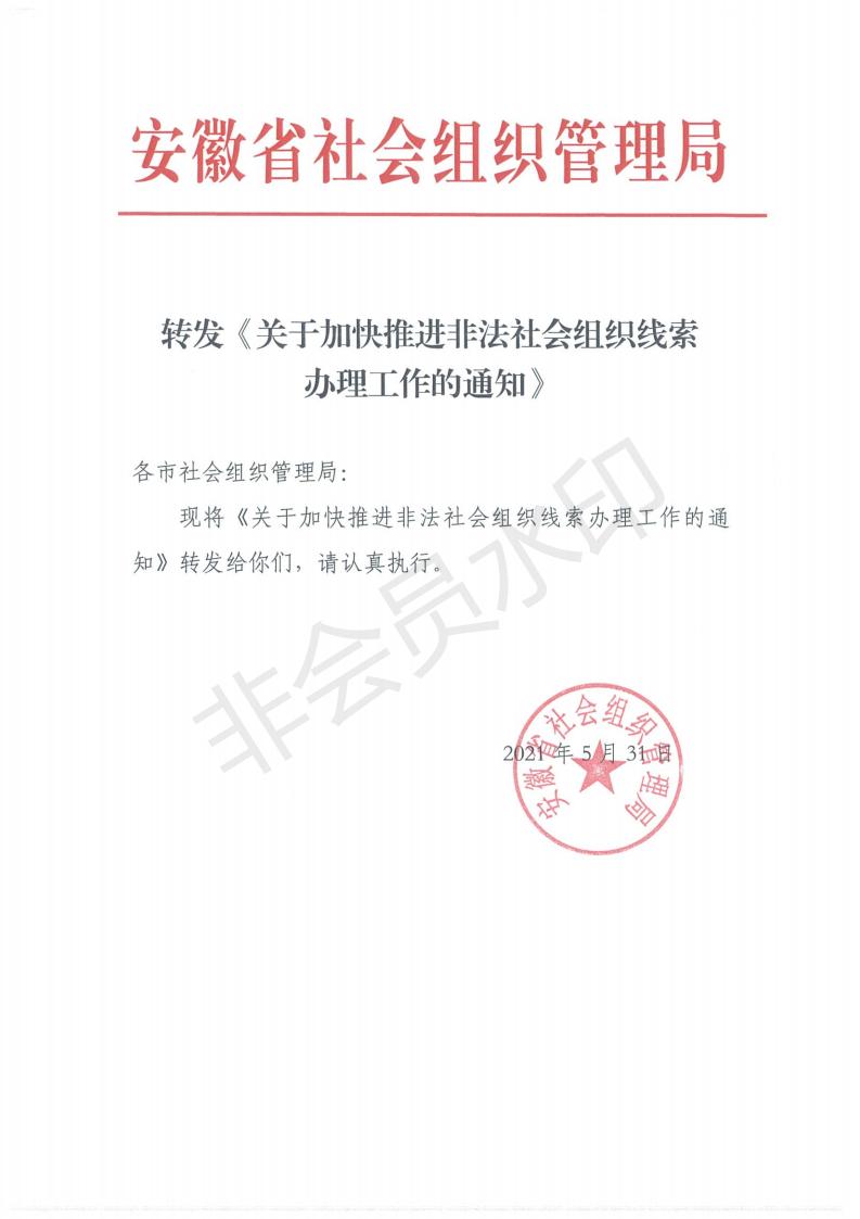 转发《关于加快推进非法社会组织线索办理工作的通知》