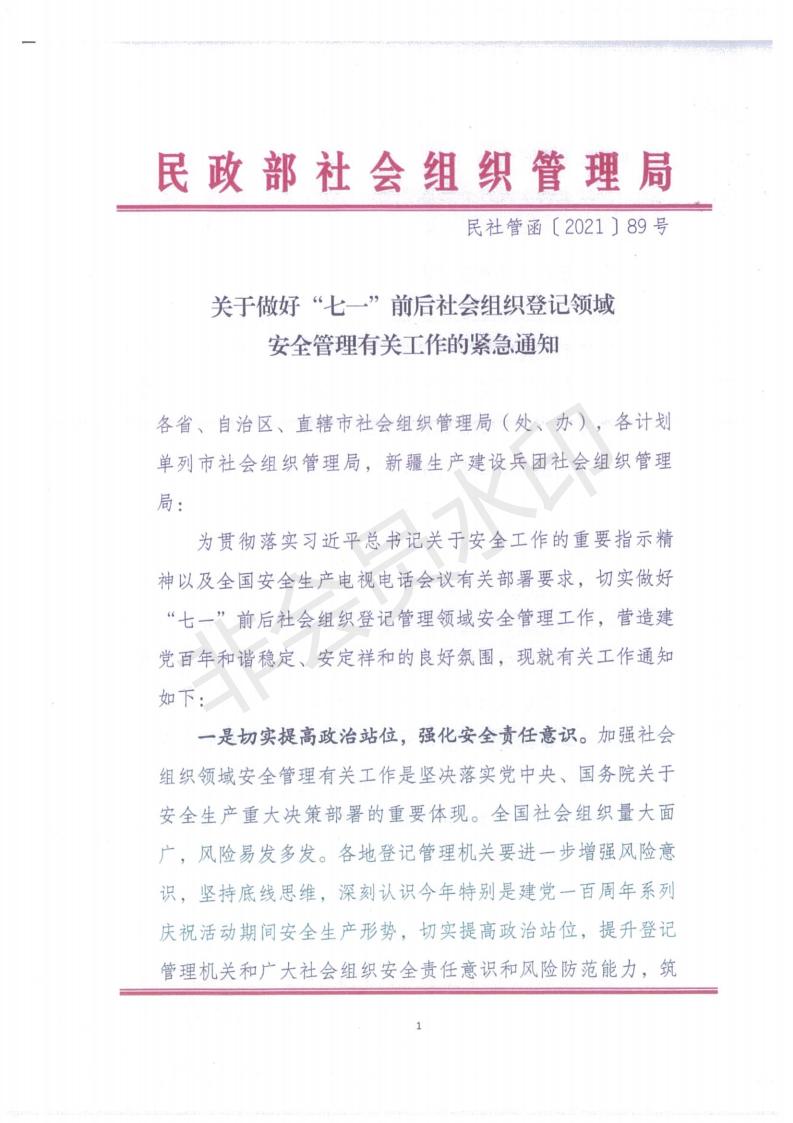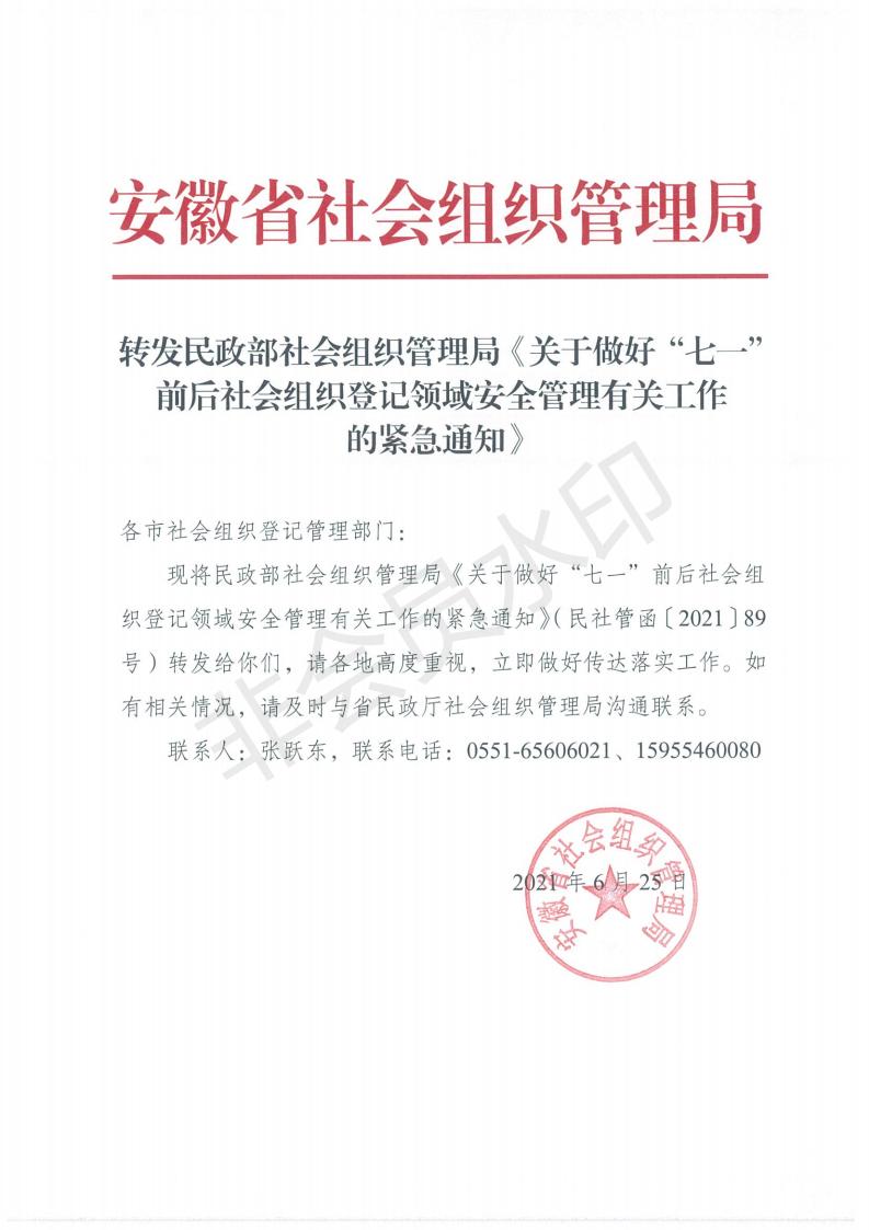 转发民政部社会组织管理局《关于做好“七一”前后社会组织登记领域安全管理有关工作的紧急通知》