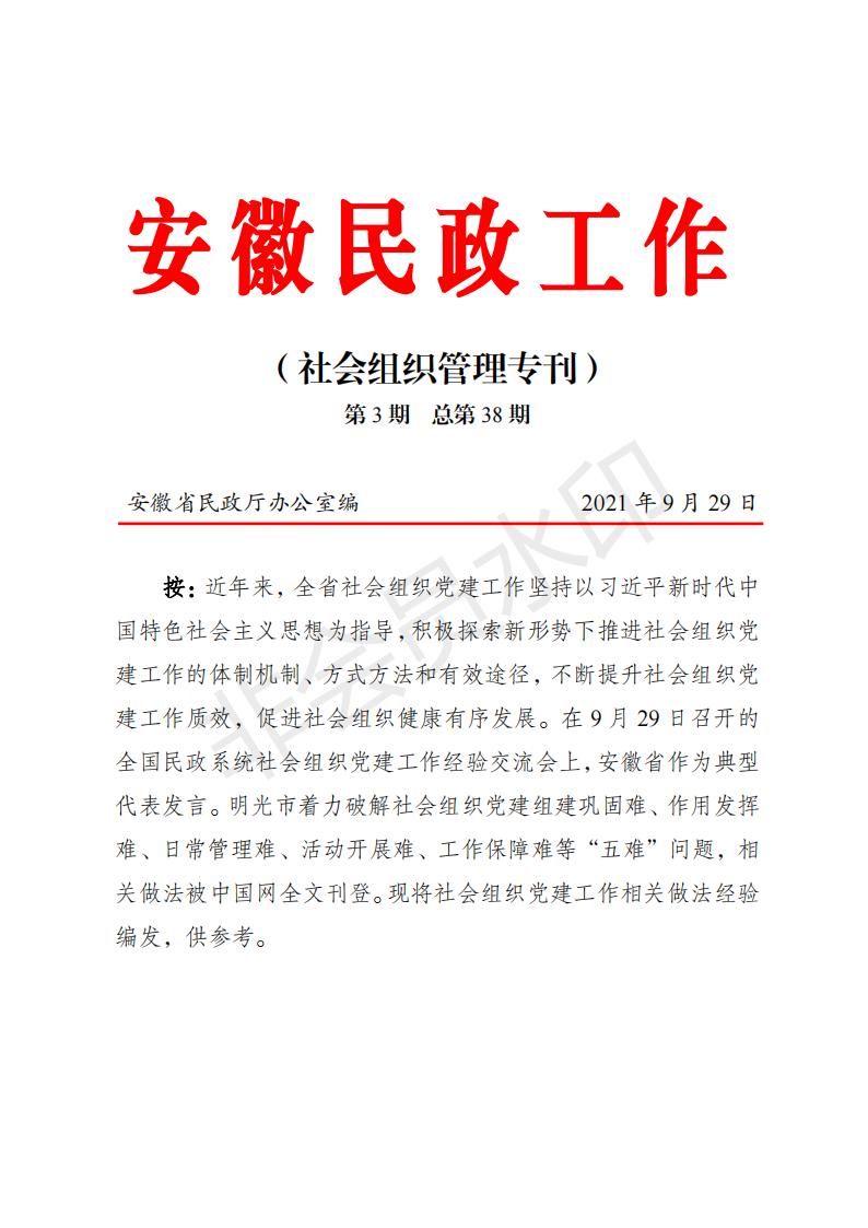 安徽民政工作社会组织管理专刊第3期+总第38期