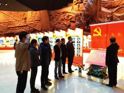 重温一次入党誓词。“我志愿加入中国共产党……”,党员们胸前佩戴党徽,面对鲜红的党旗,在渡江战役纪念馆大厅内,支部负责人带领大家重温入党誓词,提醒大家时刻牢记党员身份,鞭策全体党员不忘初心,继续前进。