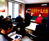 金风送爽,丹桂飘香。在全国亿万人民沉浸在党的十九大胜利召开的幸福时刻,2017年10月18日上午,铜陵市炳烛诗书画联谊会组织会员收看了中国共产党第十九次全国代表大会胜利召开的盛况,有些老同志还认真的做了笔记。下午会员共20多人在市人民社区居民活动中心一楼老年大学教室举行神州庆盛会 诗界奏强音——庆祝党的十九大胜利召开诗词朗诵会,以诗词的形式歌颂党的十九大胜利召开。歌颂了我们党十八大以来,在以习近平总书记为核心的党中央的坚强领导下,以法治国,从严治党。在经济建设,一带一路建设方面取得了辉煌的成就,在国防科技,教育卫生,文化发展等各个领域所取得地伟大成就,歌颂了铜陵人民在党的领导下,锐意进取,不断创新,以科技建市,文化兴市,使我市呈现一派生机勃勃的繁荣新景象,弘扬了主旋律,高唱了正气歌。