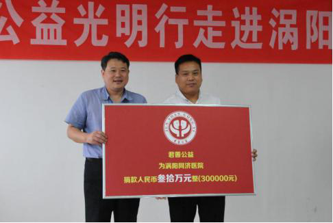 2017年9月20日上午11时,君善公益走进涡阳县举办“君善公益光明行”公益项目启动仪式。活动现场君善公益向涡阳同济医院捐赠人民币叁拾万元,用于县60岁以上老年人的白内障医疗救助。