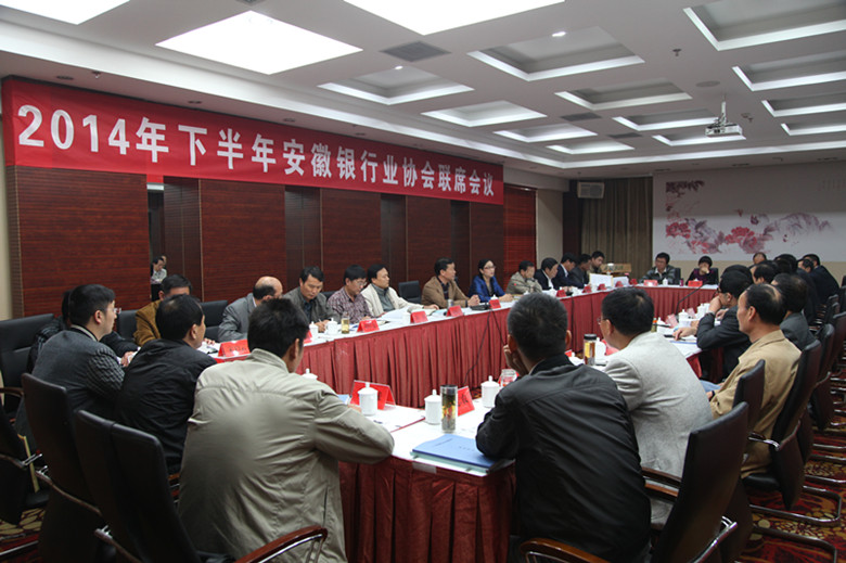10月29日,2014年下半年安徽银行业协会联席会议在蚌埠市召开。蚌埠银监分局局长李爱国到会并致词,省银行业协会专职副会长陈学军,各市银行业协会专职(常务)副会长、秘书长,省银行业协会秘书处全体工作人员参加会议。