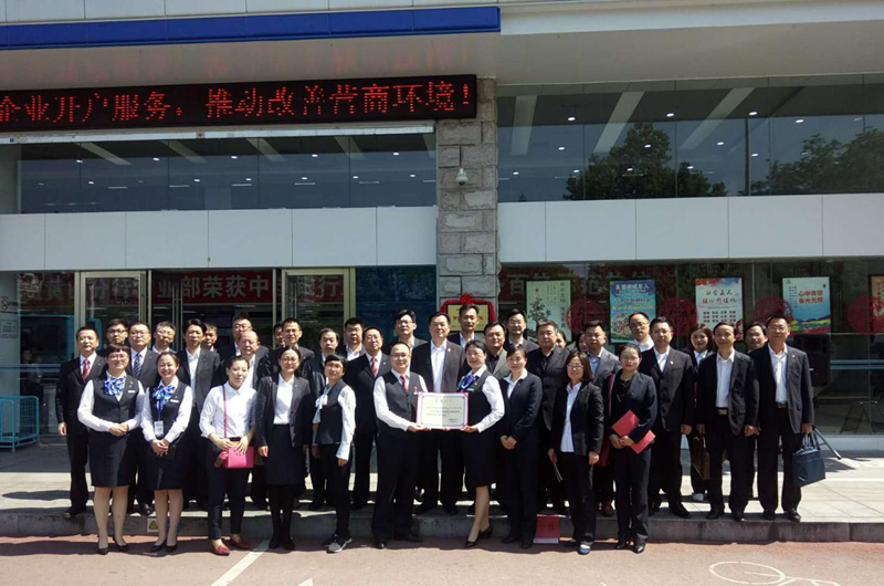 省建设银行杨庆生纪委书记、黄山银监分局刘星局长、省银行业协会宣恒月副秘书长和建设银行黄山市分行方志明行长共同为建设银行黄山市分行营业部荣获“2017年度中国银行业文明规范服务百佳示范单位”揭牌。
