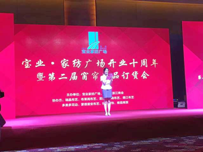 8月28日至29日,宝业家纺广场开业十周年暨第二届窗帘床品订货会成功举办。本次订货会由宝业家纺广场及安徽省浙江商会主办,瑞晶布艺软装馆、布莱阁软装馆、浙江昱杰纺织、德江布艺软装馆、蒙德里安布艺、储韵窗饰、多美多花边、合肥维菇商贸协办。