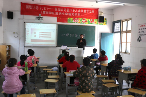 本次活动分成两个小组,一组由姜广飞老师带领为孩子们开展心理健康教育讲座,另外一组由李翔老师带领为孩子们开展团体辅导活动。