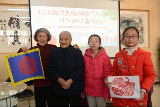 合肥市好人之家志愿者彭霞、孙琼等人在活动举办前夕,特地请爱心书法家为奶奶写上一副书法作品,做为生日礼物在活动现场送给奶奶,祝她身体健康,万事如意。同时爱心学生家长汪习宝说:“物类聚,人群分。我坚信,一个好人能带动身边人,一群好人就能带出“好人群”。我们会接过行善助人的接力棒,把张奶奶的大爱继续传递下去!”