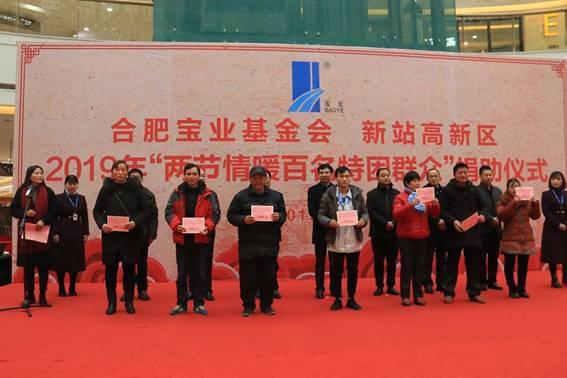 在捐助活动上,安徽省浙江商会会长、安徽宝业建工集团有限公司总经理高君代表合肥宝业基金会向新站高新区捐赠20万元善款,新站高新区区社会事业党委负责人向安徽宝业集团颁发捐赠证书,出席捐助活动的领导向受助特困群体代表发放救助金。