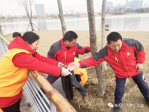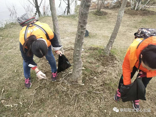 2月17日上午,在阜阳阳光爱心公益协会张秋乳,王冠军的倡议下,协会主办徒步开展“我爱阜阳 创建卫生城市阳光先行”进双清湾志愿服务活动。志愿者和群众一道清理垃圾,宣传环境保护治理知识,增强广大市民的环境保护意识。