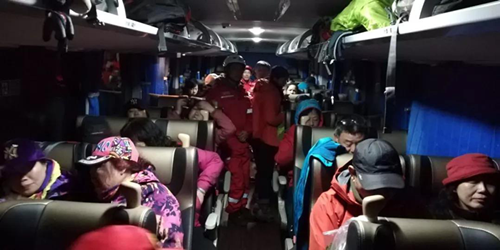 考虑到安全因素,救援队员分组带人,终于在24日凌晨3:40左右确定所有游客登上大巴车后,才与当地民警驱车返回,最后一批队员到家已是凌晨5点钟。
