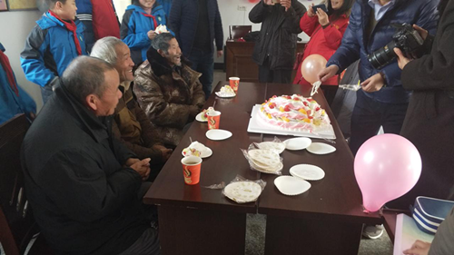(志愿者为舒城管岭村五保老人过生日)