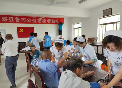 6月29日,黟县善巧志愿者协会联合黟县人民医院、??树理发师团队在黟县碧阳敬老院开展“迎七一颂党恩,我为党旗增辉”活动。义务为碧阳镇古黄村的老党员和敬老院的人义诊、检查身体、理发、剃须,让老党员和老人们可以精精神神的过七一。
