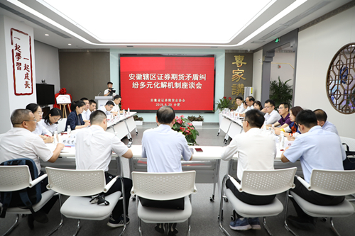 2019年6月20日,安徽辖区证券期货矛盾纠纷多元化解机制座谈会在合肥召开。会议重点围绕发挥矛盾纠纷多元化解机制在证券期货领域的积极作用,扎实做好投资者教育工作,保护投资者合法权益,促进辖区资本市场的健康稳定发展进行了深入探讨和交流。协会副会长兼秘书长许忠东及相关部门负责同志,辖区证券、期货公司分管领导和合规部门负责人,投资者教育基地负责人,协会部分调解员代表,安徽证监局投保处有关工作人员应邀参加会议。