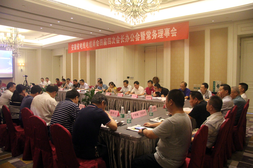 8月3日上午,安徽省电线电缆商会四届四次会长办公会暨常务理事会议在六安曙光铂尊酒店隆重召开,六安市政协副主席聂保国、六安市工商联主席于军、商会执行会长兼法人沈文植、会长单位代表、安徽天康集团总经理毛文章等商会领导班子出席会议。参加会议的有常务副会长、副会长、常务理事及新增会员,共计50多人,会议分两个阶段。