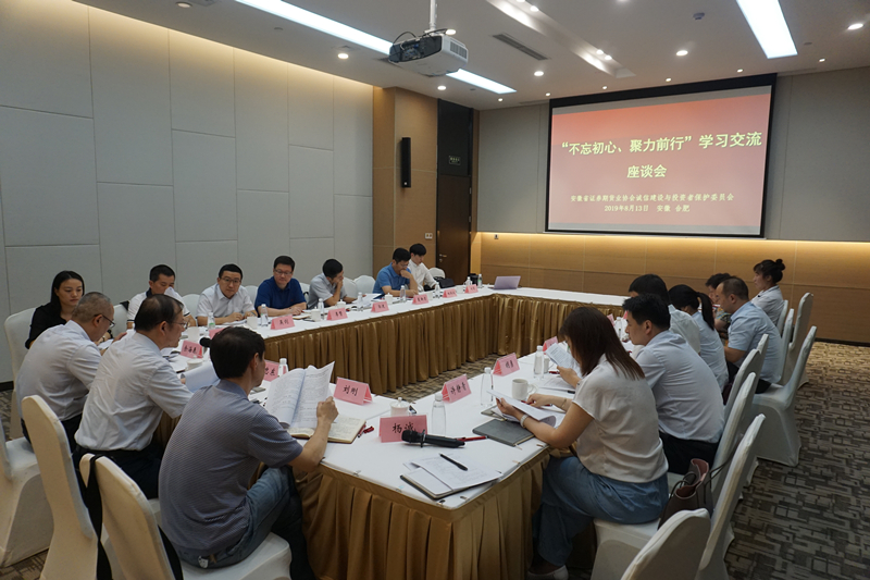 8月13日,安徽省证券期货业协会诚信建设与投资者保护委员会在合肥组织召开“不忘初心、聚力前行”学习交流座谈会。委员会主任委员、副主任委员及部分委员参加会议,协会副会长兼秘书长许忠东、安徽证监局投保处副调研员刘刚应邀出席会议,会议由委员会主任委员、华安证券总裁助理余海春主持。
