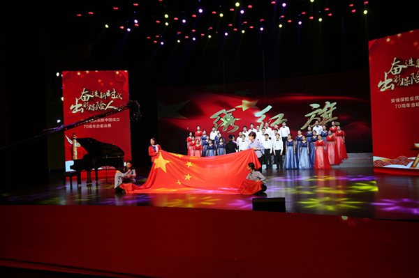 壮丽70年,奋进新时代。9月17日下午,在安徽银保监局指导下,由安徽省保险行业协会主办,富德生命人寿安徽分公司承办的“奋进新时代 出彩保险人”——安徽保险业庆祝新中国成立70周年合唱决赛在合肥市瑶海大剧院隆重举行。来自在皖省级保险公司的14支参赛队伍,近600余人以昂扬的热情,唱响壮丽70年的激扬旋律,共同祝福祖国繁荣富强。安徽省金融工会、安徽省银行业协会、安徽省保险学会、安徽省保险行业协会以及全省67家保险机构的负责人、员工等400余人观看比赛。