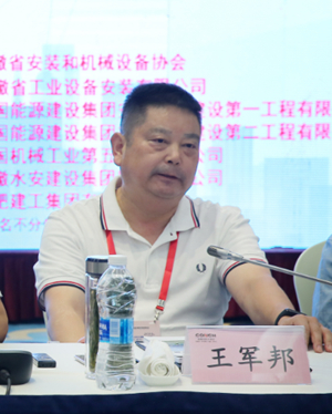 安徽省安装和机械设备协会会长、安徽建工集团控股有限公司总经理助理王军邦致欢迎辞,他对嘉宾的到来表示欢迎和感谢,并介绍了全国和安徽省上半年建筑业数据和当前建筑业形势,希望建筑安装企业加强应对风险和挑战的能力,坚定信心,强化担当,苦练内功,实现企业转型升级。