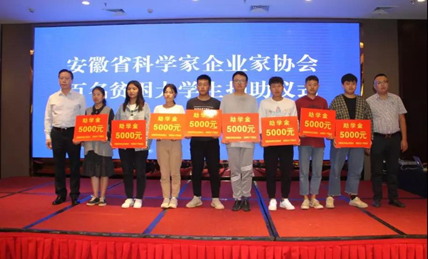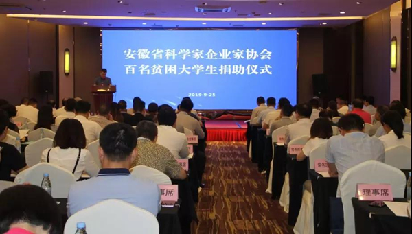 “百名贫困大学生捐助”活动是安徽省科学家企业家协会为进一步贯彻党的十九大精神与习近平新时代中国特色社会主义思想,弘扬“人道、博爱、奉献”的红十字精神等,结合“不忘初心,牢记使命”主题教育活动,联合安徽省红十字基金会、陕西省延川县慈善协会而开展。活动得到了协会众多爱心企业家的积极响应,奉献爱心。本次活动是协会2019年百名贫困大学生捐助活动的的第三场,在陕西延川、安徽阜南分别进行了第一场和第二场捐助活动。