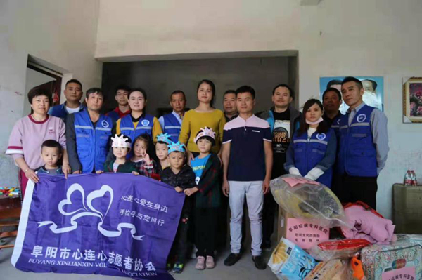 阜阳市心连心志愿者协会与爱心人士为龙凤四胞胎共同庆祝6周岁生日。