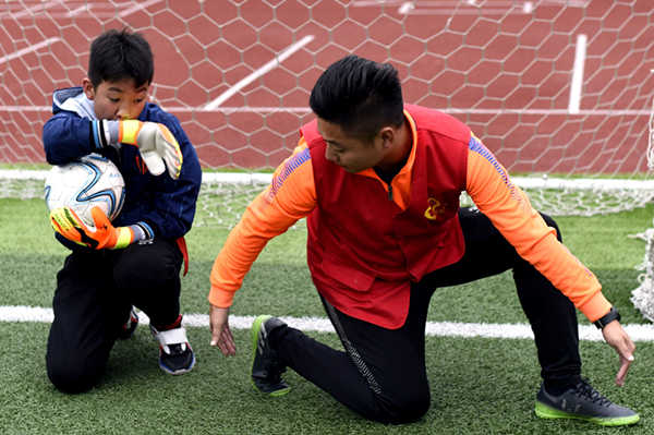 此次活动在合肥市红星路小学志愿者水亚男老师、合肥市南门小学志愿者张明杨老师带领孩子们进行足球游戏中拉开序幕。他们了解了孩子的基本情况之后,根据不同的年级的同学制定了不同难度的足球课程,并认真为每一节课准备了详细的教案。很快他们就以超高的专业技术水平以及特有的亲和力赢得了孩子们喜爱,欢声笑语在操场上荡漾,足球在这些青春洋溢的孩子们的脚下变得魅力四射,运动让他们找回了本该拥有的纯真与空间上的自由自在。其中张老师首先向孩子们讲述球星的励志故事,让孩子们对足球进行全新的认识,随后张老师通过一系列足球游戏,让孩子们感受到足球的乐趣,激发他们的学习兴趣,并对学校足球队进行了专业指导训练。通过这几天的教学与相处,张老师教会了孩子要勇敢地去追逐自己的梦想,即使在这个过程中跌倒了无数次、失败了无数次,可只要自己不曾放弃,不忘初心,那么小人物也会实现大梦想。水老师的训练主要是针对学生由于基础薄弱问题来开展的,在第一节课就要求同学们从衣服、足球、水杯的摆放等一些常规做起,养成好的习惯。其次是传球游戏改用手传,学会抬头观察,掌握要领。再者就是守门员的基本培训,从准备姿势开始到接低平球、半高球、高空球、扑球……进行层层递进的练习,毕竟防守是最好的进攻,抓住了关键更利于攻破点难。这一周时间大幅度提高了孩子们对于足球的意识和兴趣。毕竟“兴趣是一个人最好的老师”,孩子们从心底里去接受去完成一件事时,他们发出的银铃般的笑声真的很有治愈性。足球不仅仅健体,更是树德育人。当球在操场上划起弧线的那一刻,线的这端,是现在,那端,是未来。