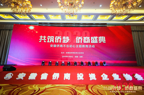 只争朝夕启新程,不负韶华再奋蹄!2020年1月8日,由安徽省人大民宗侨外委员会、安徽省人民政府侨务办公室、安徽省政协港澳台侨外事委员会、致公党安徽省委员会、安徽省侨联共同指导,由安徽省侨商投资企业协会主办的“共筑侨梦侨商盛典——安徽侨商不忘初心主题教育活动”在合肥隆重举办。