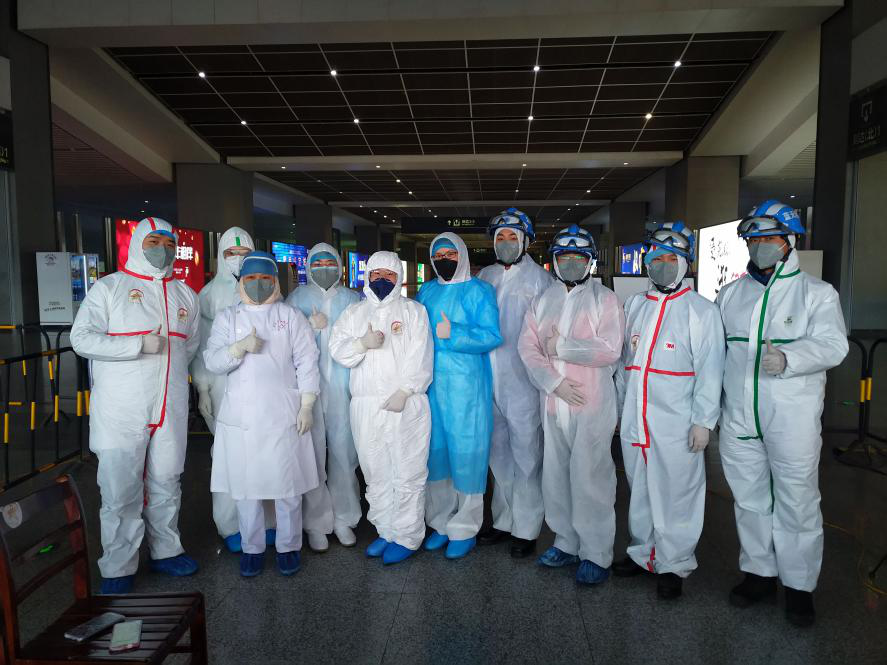 连续12天,蓝天队的队员们每天组织6-10名志愿者赴火车站测量来往旅客体温,因为防护服十分紧缺,为了尽量节约使用物资,怕执勤期间上厕所,队员们穿戴防护服前都尽量不喝水,坚持到每轮换班才吃饭喝水。坚持7、8个小时不吃不喝是每个队员必备的能力,队员们穿着防护服甚至连坐下都不敢,生怕不小心损坏防护服。因为火车站人流量大,有的时候每隔几分钟就有火车到站,队员们一直站着引导旅客测量体温,一天下来,嗓子哑了,胳膊酸了,腿也肿了,换岗脱掉防护服后,筋疲力尽的队员们摊在椅子上动都不想动。虽然很疲惫,但是队员们默默地已经坚持了十天,看到每位旅客平安的回家,心里装了满满的幸福。旅客的行为也让志愿者们感动,纷纷对他们竖起大拇指,道声辛苦了。有一名旅客连续两天为志愿者们点外卖送来了奶茶,因为志愿者执勤时候没办法喝,便通过订餐电话联系送奶茶的旅客希望不要再送,对方回复说自己也是一名志愿者,这次没能上防疫一线,通过这样的方式表达自己对执勤志愿者崇高的敬意。
